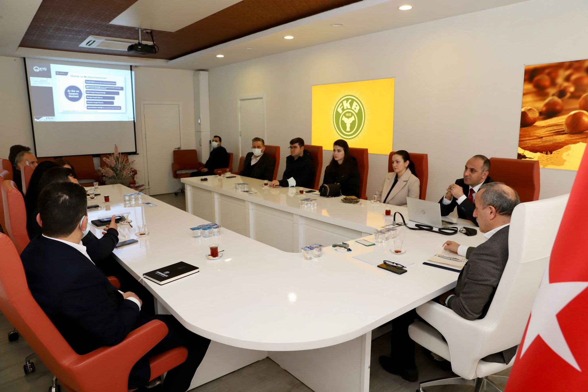 Gerçekleştirilen ziyaret kapsamında yapılan toplantıya KTÜ TTM Müdürü Prof. Dr. Oktay YILDIZ, Öğr. Gör. Beril DEĞERMENCİ, Öğr. Gör. Kerim SÖNMEZ ve Proje Uzmanı Dilek İSKENDER BALABAN katılım sağladı. Toplantı oturumu Fiskobirlik Genel Müdürü Turgay ÇAKMAK ile yapılan görüşmeler ile başladı. Toplantıda Ar-Ge Merkezi kurulum süreçleri ve firmaya sağlayacağı avantajlarla ilgili sunum yapıldı.