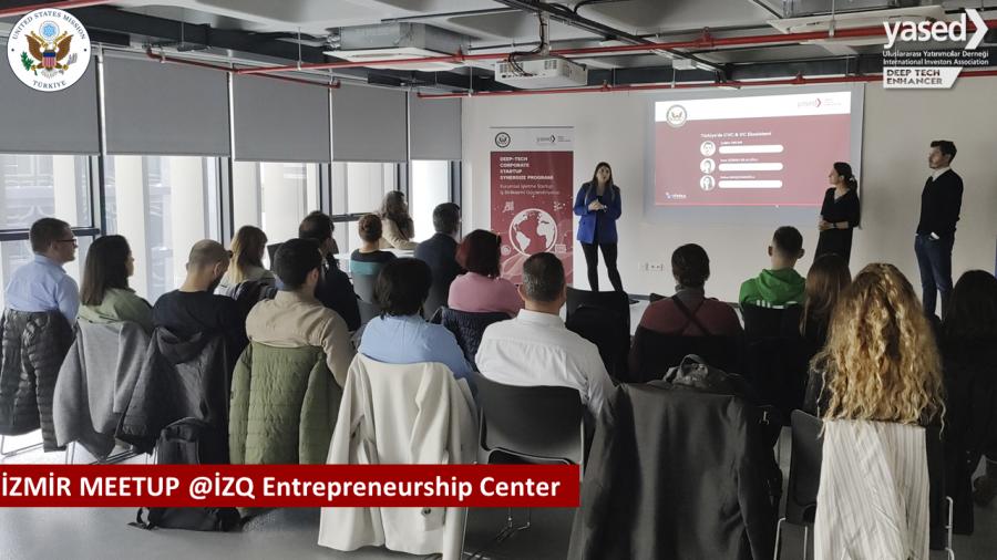 Uluslararası yatırımcılar derneği (YASED) ve VİVEKA tarafından düzenlenen ABD Büyükelçiliği Hibe Programı tarafından finanse edilen Deep Tech Enhancer projesi kapsamında yürütülen Corporate-Synergize Programı'nın "Startup Reach Out" etkinliğine 30.11.2022 tarihinde katılım sağladı. İzmir'de İzQ Girişimcilik Merkezi'nde gerçekleştirilen etkinliğe katılım sağlayan KTÜ TTM Şirketleşme ve Girişimcilik Koordinatörü Eren YILMAZ ve Şirketleşme ve Girişimcilik Proje Uzmanı Güler Tuğba GÜLTEKİN, KTÜ TTM girşimcilerinin fırsatlardan yararlanabilmeleri için ilgili bağlantıları sağlaması üzerine görüşmeler gerçekleştirildi. İlerleyen dönemde KTÜ TTM girişimcileri ile birebir görüşmeler planlandı.