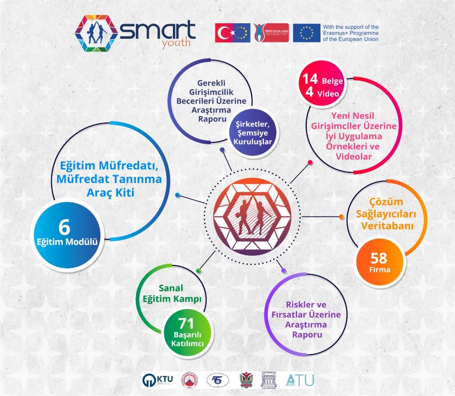 Karadeniz Teknik Üniversitesi’ni temsilen KTÜ Teknoloji Transferi Uygulama ve Araştırma Merkezi'nin proje yürütücülüğünü üstlendiği, Trabzon Ticaret ve Sanayi Odası, Bulgaristan Ticaret ve Sanayi Odası, VUZF Üniversitesi(Bulgaristan), Galati Dunarea de Jos Üniversitesi(Romanya) ve Atlantik Teknoloji Üniversitesi(İrlanda) kurumlarının proje ortağı olarak yer aldığı, Erasmus+ Programı kapsamında Avrupa Komisyonu tarafından desteklenen “Strategic Management, Agility and Right Technologies for Youth - SMART Youth” Projesi (Ref: 2020-2-TR01-KA205-095914) 2020-2022 yılları arasında yürütülmüş, başarıyla tamamlanan projenin sonuç ve çıktıları hedef kitleyle paylaşılma aşamasına gelinmiştir.