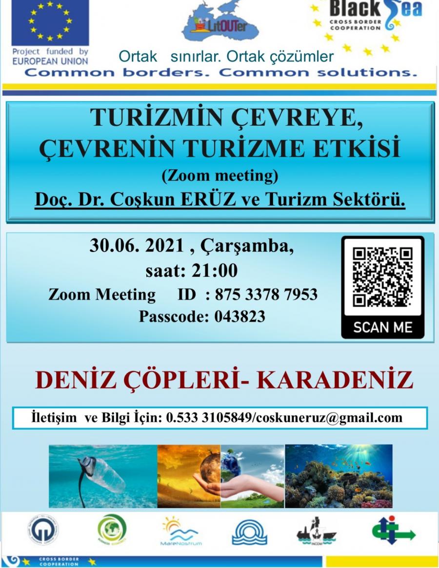 KTÜ Sürmene Deniz Bilimleri Fakültesi tarafından Karadeniz Sınır Ötesi İşbirliği Programı 2014-2020 (Black Sea Basin Programme Cross Border Cooperation) kapsamında yürütülen “LitOUTer (BSB-785) Karadeniz Ekosistemini Korumak İçin Halkın Farkındalığını Artırılması ve Deniz Çöplerinin Azaltılması” (Raising Public Awareness and Reducing Marine Litter for Protection of the Black Sea Ecosystem) isimli proje kapsamında; turizmin çevreye, çevrenin turizme etkisi ve Karadeniz'de deniz çöpleri konulu bir bilgi aktarımı ve sektör temsilcileri ile riski azaltma için fikir alışverisi yapılması için 30 haziran Çarşamba günü saat 21:00 da zoom üzerinden (link aşağıda verilmiştir) bir toplantı düzenlenmesi planlanmıştır.