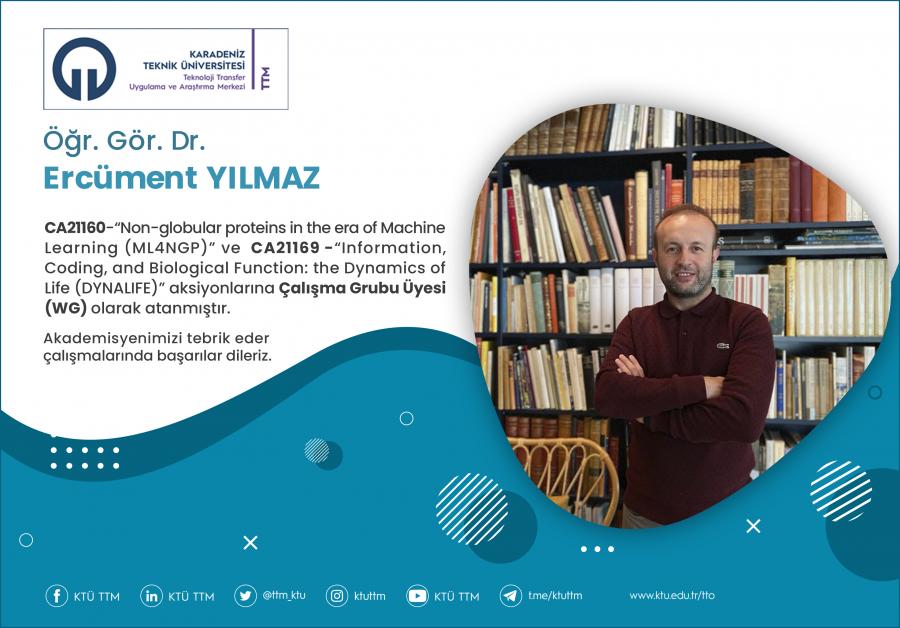 Üniversitemiz Trabzon Meslek Yüksekokulu Bilgisayar Teknolojileri Bölümü öğretim üyesi Öğr. Gör. Dr. Ercüment YILMAZ, COST Programı’nın “CA21160 - Non-globular proteins in the era of Machine Learning (ML4NGP) ve “CA21169 - Information, Coding, and Biological Function: the Dynamics of Life (DYNALIFE)” aksiyonlarına Çalışma Grubu Üyesi (WG) olarak atanmıştır.