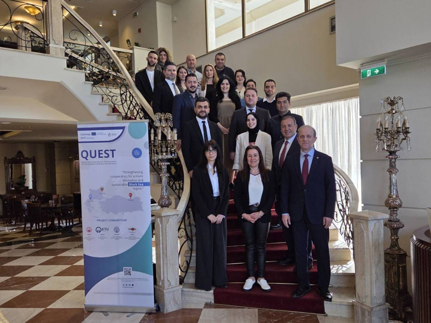 Interreg NEXT Black Sea Basin Programme kapsamında yürütülen ve Karadeniz Teknik Üniversitesi Teknoloji Transferi Uygulama ve Araştırma Merkezi’nin proje ortağı olarak yer aldığı “Quadruple Helix-Based Enhancement of Stakeholders at Black Sea Territory (QUEST) Projesi”, Trabzon Ticaret ve Sanayi Odası’nın (TTSO) koordinatörlüğünde; Union of Bulgarian Black Sea Local Authorities (UBBSLA) ve Organization for Local Development (ANATOLIKI S.A.) ortaklığında uygulanmakta olup, Karadeniz Havzası’nda yer alan kamu, üniversite, özel sektör ve sivil toplum kuruluşlarının fonlara erişim kapasitelerinin artırılmasını, proje geliştirme ve uygulama yetkinliklerinin güçlendirilmesini ve kurumlar arası iş birliklerinin geliştirilmesini amaçlamaktadır.