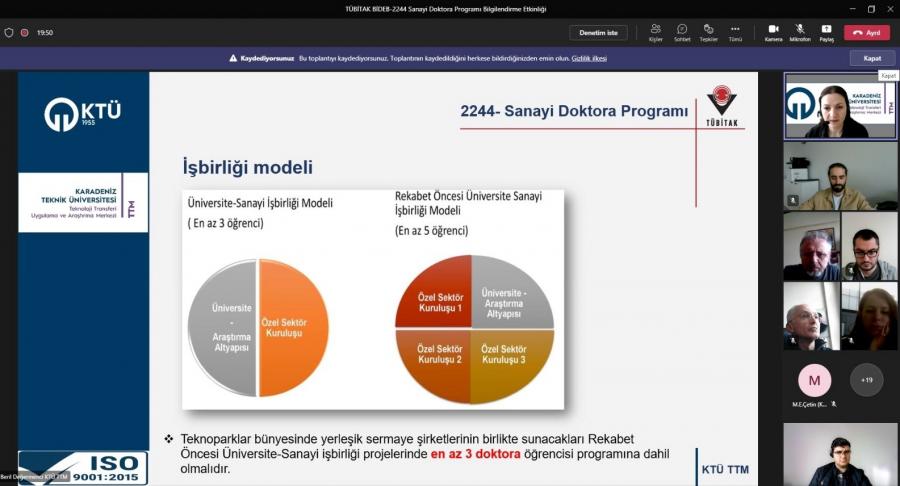 Sanayide ihtiyaç duyulan doktora derecesine sahip nitelikli insan kaynağının üniversite-sanayi işbirliği ile yetiştirilmesi, sanayide doktoralı araştırmacı istihdamının teşvik edilmesi ve üniversite/araştırma altyapısı - sanayi işbirliğinin geliştirilmesinin amaçlandığı program ile ilgili önemli bilgiler paylaşılarak katılım sağlayan araştırmacıların ve firmaların bilgi edinmesi sağlandı.
