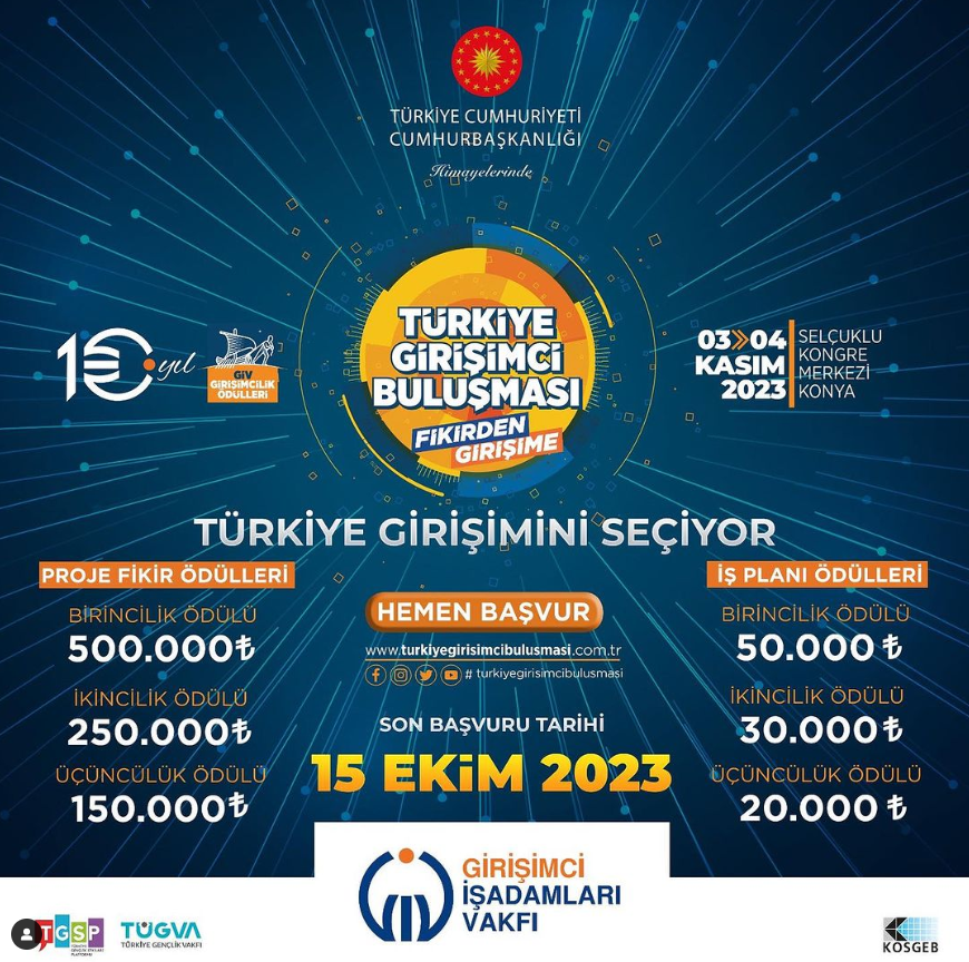 Girişimci İşadamları Vakfı (GİV) tarafından, Cumhurbaşkanlığı himayelerinde KOSGEB, TÜGVA işbirlikleri ile düzenlenen TÜRKİYE GİRİŞİMCİ BULUŞMASI girişimcilik ekosistemine değer katmak üzere; girişimcilerin bilgilendirilmesi, fikir ve ürünlerinin ulusal ve uluslararası yatırımcılarla bir araya getirilmesi, ödüllendirilmesi ve ticarileştirilmesine katkıda bulunulması, projeler arasında sinerji ve etkileşim oluşturulması, tecrübe paylaşımı ile birlikte üniversite, sanayi ve kamu işbirliklerinin geliştirilmesini amaçlamaktadır.