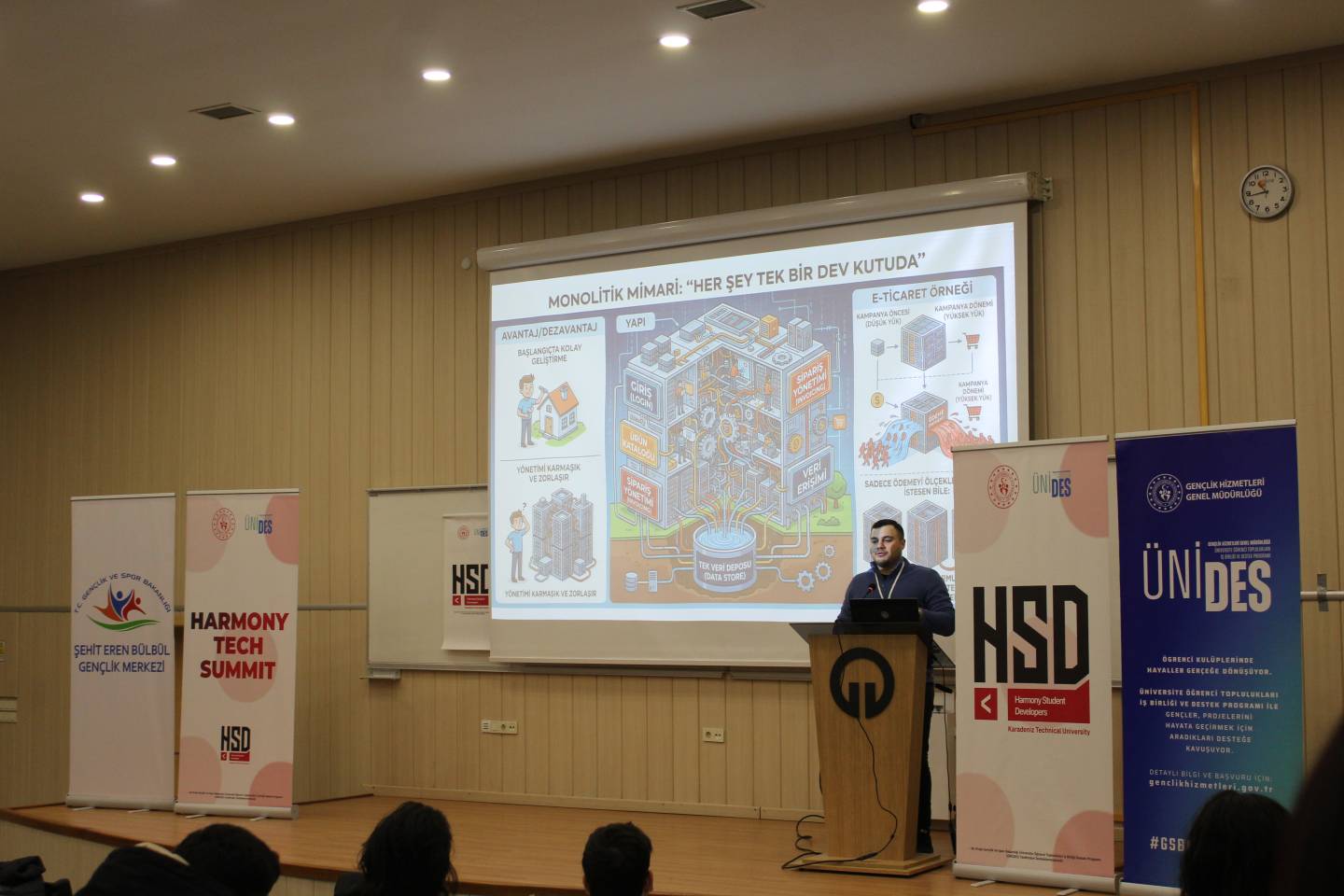 Bölümümüzün öğrenci kulüplerinden HSD (Harmony Student Developers) tarafından 24 Mart 2026 tarihinde KTÜ İİBF Amfi-3’te “Harmony Tech Summit” etkinliği düzenlendi. Saat 10.00’da başlayan etkinlikte, teknoloji dünyasının güncel başlıkları öğrenciler ve katılımcılarla buluşturuldu.